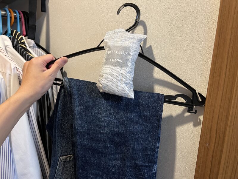 自分はこのような感じでデニムを吊るして、その上に掛けて使用しております。